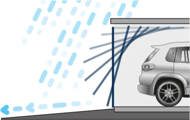 Durch das Öffnen und Schließen des Garagentores bei täglicher Nutzung ist eine Luftzirkulation in Ihrer Garage gewährleistet. Zudem sind produktionsseitig Lüftungsöffnungen vorgesehen. Sollte Ihrer Garage dennoch einmal "schwitzen", liegt es daran, dass warme Luft im Gegensatz zur kalten Luft mehr Feuchtigkeit transportiert. Wenn Sie beispielsweise an einem schwülen Sommertag nach einem starken Regenschauer Ihr nasses Fahrzeug in der Garage abstellen und sofort das Tor verschließen, bleibt die Bildung von Kondenswasser nicht aus. Die warmfeuchte Luft bleibt in der Garage und schlägt sich auf den kühleren Oberflächen der Garage nieder und kondensiert. Diesem "normalen" physikalischen Vorgang kann durch Lüften vorgebeugt werden.