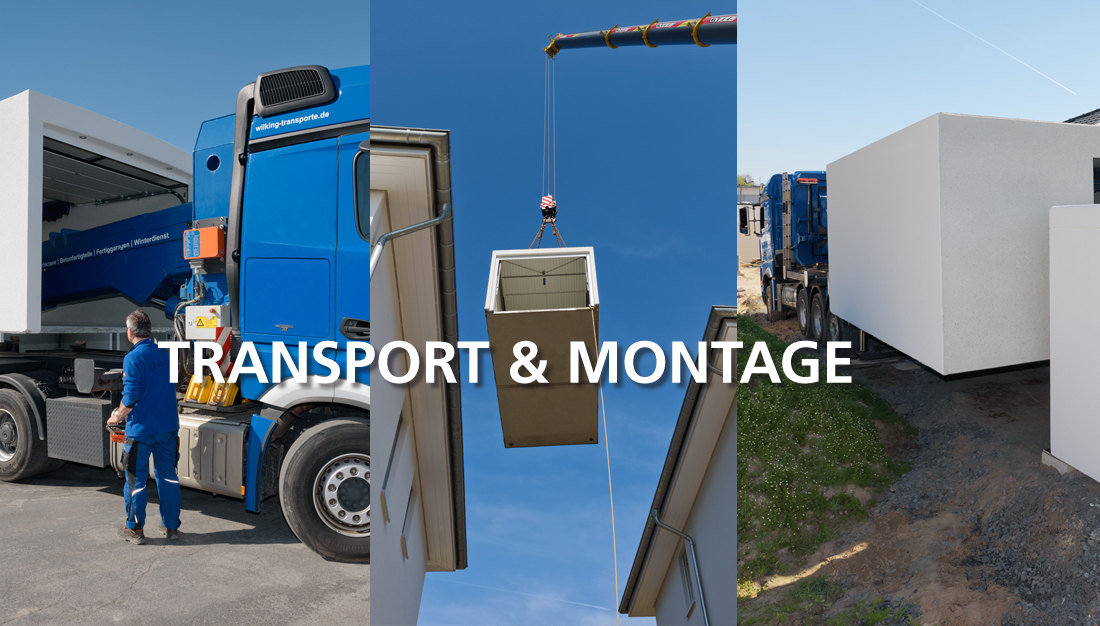 Unsere Garagen werden mit Spezialfahrzeugen geliefert und montiert. Für eine reibungslose Anlieferung ist eine befestigte Zufahrt zum Fundament und somit zur Aufstellfläche erforderlich. Achslasten bis zu 10t müssen von der Zufahrt aufgenommen werden. Die Montage mit einem speziellen Garagentransportwagen dauert ca. 1 Stunde pro Bauteil.